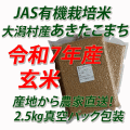 JAS有機認証の有機栽培米あきたこまちの玄米です。有機肥料で栽培した「安全」「安心」を追求したお米です。家庭用精米機で精米したり、玄米のまま食べたり。実は一番人気があります。2.5kgづつ真空パックでお届けします。